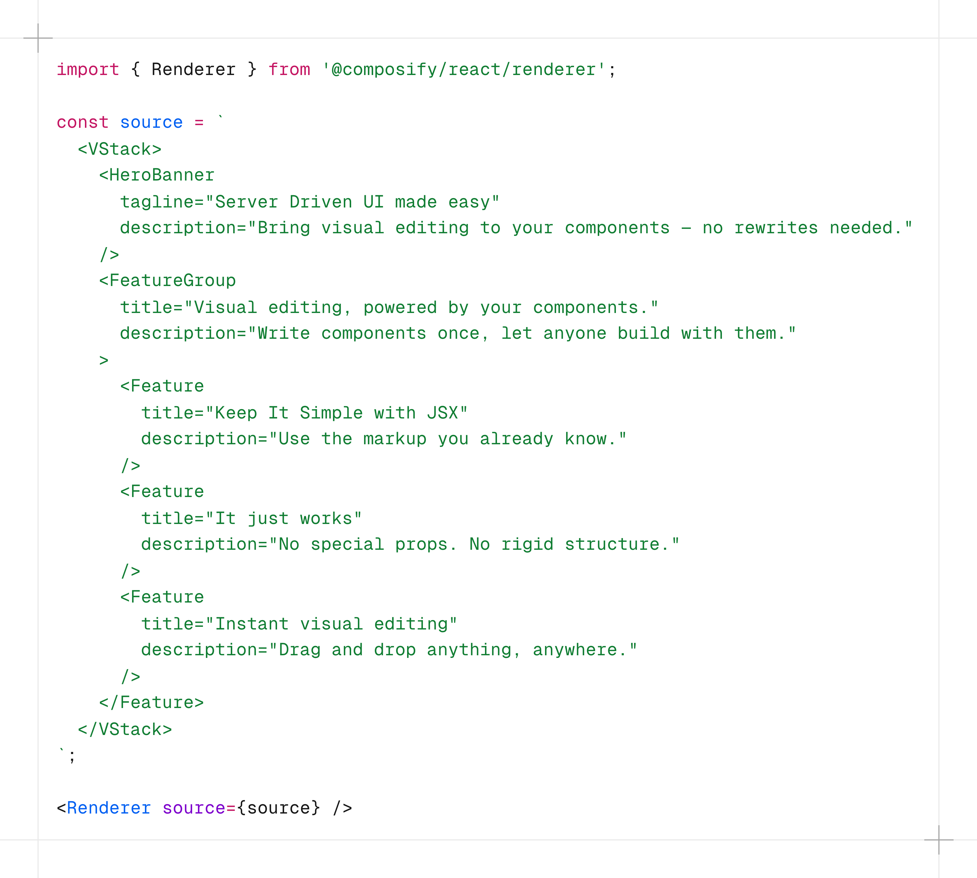 Perfect for Server Driven UI, no-code website builders, and design tools.
